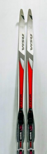Málo používané, detské bežky VISU Optima 140 cm s viazaním Rottefella /NNN/. Turistické bežky pre najmenších športovcov s dreveným lamelovým jadrom. Sklznica so šupinami.