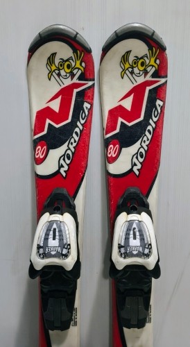 Použité lyže Nordica Nordy 80 cm, s viazaním Marker 4.5. Používané detské lyže v dobrom stave.