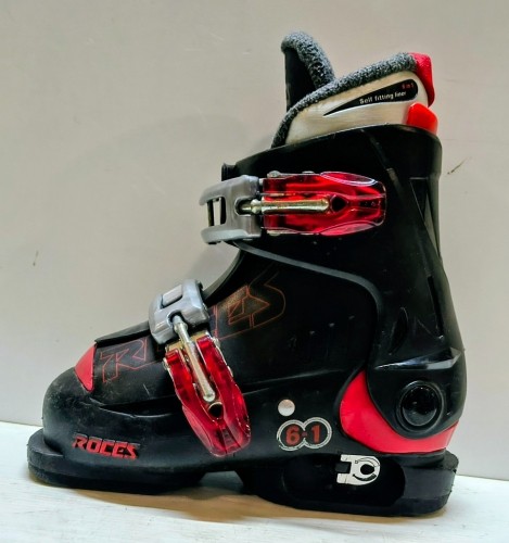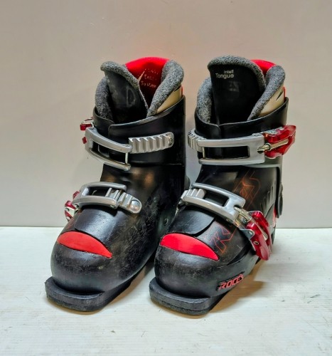Detské nastaviteľné lyžiarky ROCES IDEA JR, veľkosť MP 16 až 18.5; použité. Dĺžka skeletu od 223 mm. Veľmi málo používané detské dvojklipsňové lyžiarky v perfektnom stave.