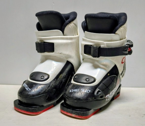 Použité lyžiarky Dalbello CX 1, veľkosť MP 16/16.5; dĺžka skeletu 204 mm. Používané, zachovalé, detské jedno-klipsňové lyžiarky.