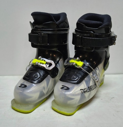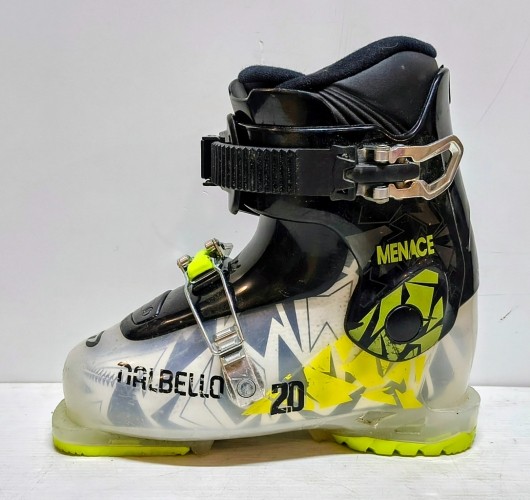 Použité lyžiarky Dalbello Menace 2, veľkosť MP 21/21.5; dĺžka skeletu 256 mm. Málo používané, zachovalé, detské dvojklipsňové lyžiarky.