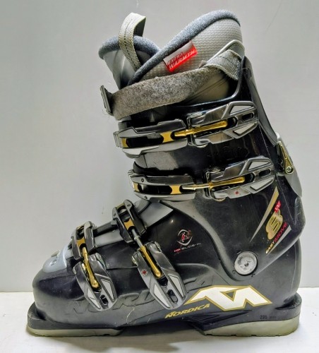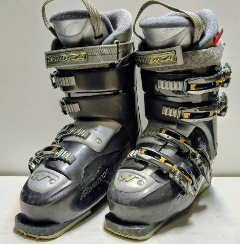 Použité lyžiarky Nordica Easy Move, veľkosť MP 25/25.5; dĺžka skeletu 295 mm. Veľmi málo používané, zachovalé, štvor-klipsňové lyžiarky.