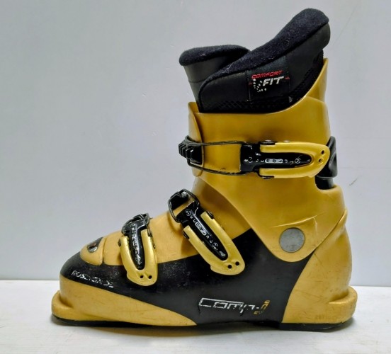 Použité lyžiarky Rossignol Comp, veľkosť MP 22/22.5; dĺžka skeletu 267 mm. Používané, detské troj-klipsňové lyžiarky.