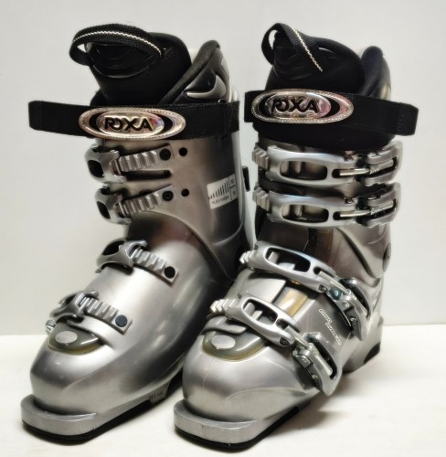 Lyžiarky ROXA PRX, veľkosť MP 22, dĺžka skeletu 268 mm. Veľmi málo používané štvor klipsňové lyžiarky v perfektnom stave, ALU klipsne. Flex index: 60.