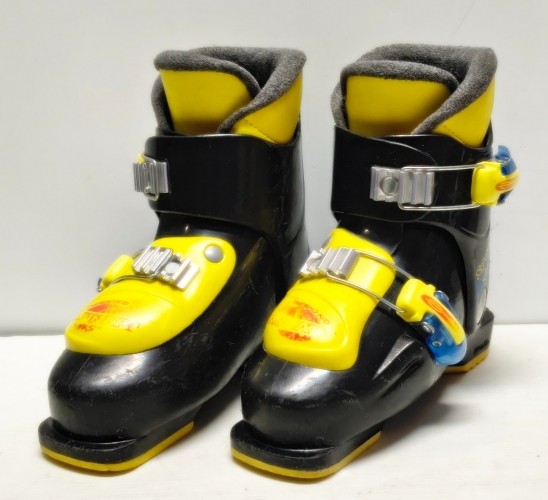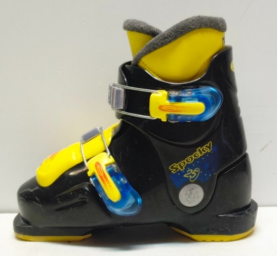 Použité lyžiarky Spocky, veľkosť MP 20/20.5, dĺžka skeletu 244 mm. Používané detské dvojklipsňové lyžiarky.