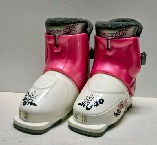 Použité lyžiarky Tecno G40, veľkosť MP 16/16.5; dĺžka skeletu 206 mm. Veľmi málo používané, zachovalé, detské jedno-klipsňové lyžiarky