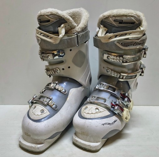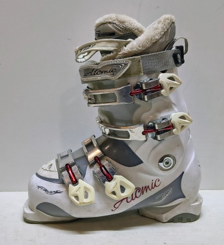 Použité lyžiarky Atomic 70, veľkosť MP 24/24.5, dĺžka skeletu 290 mm. Používaná štvorklipsňová dámska lyžiarka v dobrom stave, flex index:70.