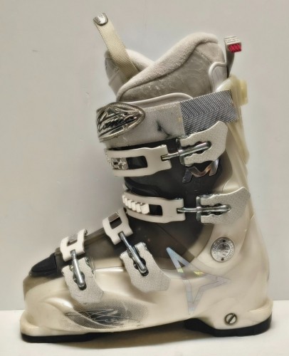Použité lyžiarky Atomic M80, veľkosť MP 24/24.5, dĺžka skeletu 286 mm. Málo používaná štvorklipsňová dámska lyžiarka v perfektnom stave, flex index:80.