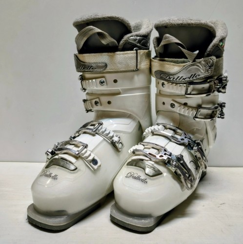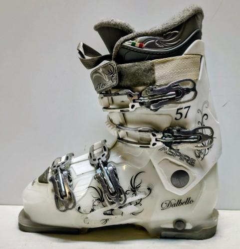 Použité lyžiarky Dalbello Aspire, veľkosť MP 25/25,5; dĺžka skeletu 298 mm. Málo používané štvor-klipsňové lyžiarky v dobrom stave.