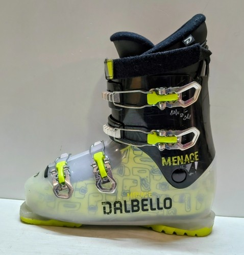 Použité pánske lyžiarky Dalbello Menace, veľkosť MP 26, dĺžka skeletu 309 mm. Používaná štvorklipsňová lyžiarka v dobrom stave, flex index:60.
