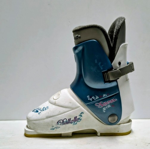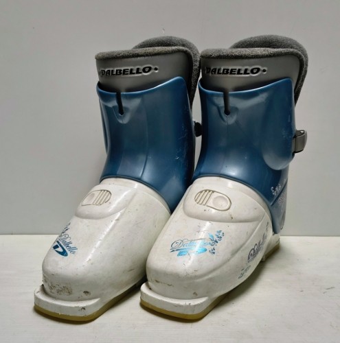 Použité lyžiarky Dalbello Xara, veľkosť MP 24/24.5 = UK 5/5.5, dĺžka skeletu 280 mm. Používaná jednoklipsňová lyžiarka so zadným nástupom.