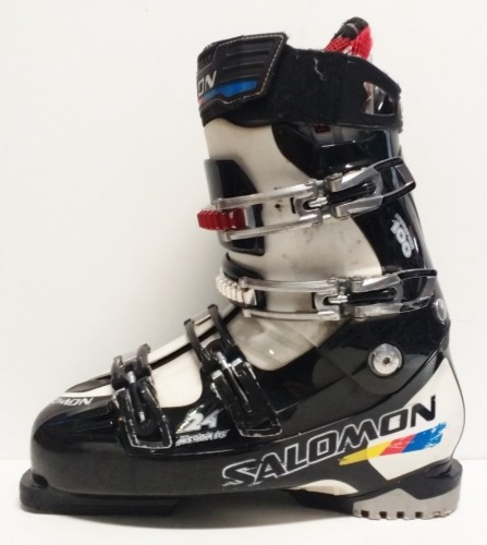 Použité lyžiarky Salomon 24 Mission RS, veľkosť MP 28/28.5=UK 9/9,5; dĺžka skeletu 328 mm. Používané štvor - klipsňové /ALU/ lyžiarky v dobrom stave.Flex index: 100.