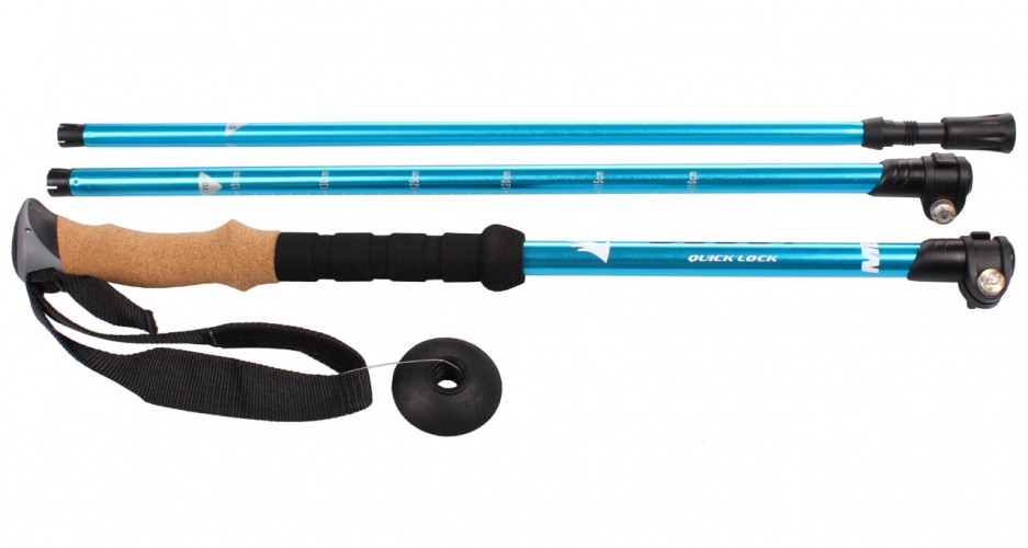 Teleskopické trekingové palice Merco Scout Vám poskytnú pri chôdzi potrebnú oporu a väčší komfort počas Vašich výletov do prírody. Turistické palice Scout sú vyrobené z hliníkovej zliatiny 7075, majú nastaviteľnú dĺžku v rozmedzí 110 - 135 cm, korkovú rukoväť s textilným pútkom a neoprénovým rozšírením a na konci je palica osadená karbidovým hrotom opatreným odnímateľnou gumovou koncovkou. Dĺžku palíc ľahko a rýchlo nastavíte pomocou dvoch skrutiek. V zloženom stave majú palice rozmery 67 x 10 x 8 cm a celkovú hmotnosť 630 g, ľahko ich teda hodíte do batohu, ak ich práve nepoužívate.
